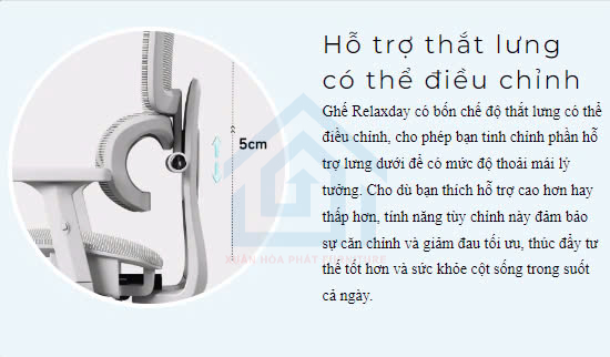 - Hỗ trợ cột sống thích hợp là chìa khóa cho những người ngồi trong thời gian dài. Ghế công thái học cung cấp hỗ trợ có mục tiêu cho cổ, lưng và cột sống dưới, duy trì đường cong "S" tự nhiên, giảm căng thẳng và thúc đẩy sự thoải mái. Lý tưởng cho việc ngồi lâu dài và sức khỏe cột sống.