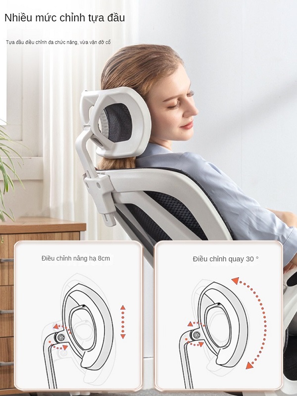 Tựa đầu có kích thước vừa vặn giúp giảm thiểu nguy cơ đau mỏi cổ khi ngồi làm việc trong thời gian dài. Bộ phận này cũng có thể dễ tháo rời khỏi ghế để vệ sinh.