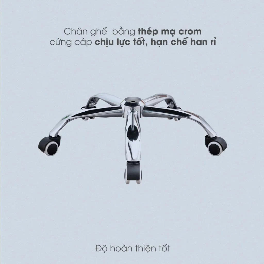 - Chân sao bằng thép mạ crom sáng bóng, tăng độ sang trọng và độ bền Bánh xe trượt mượt, xoay 360 độ, dễ dàng di chuyển trên nhiều loại sàn